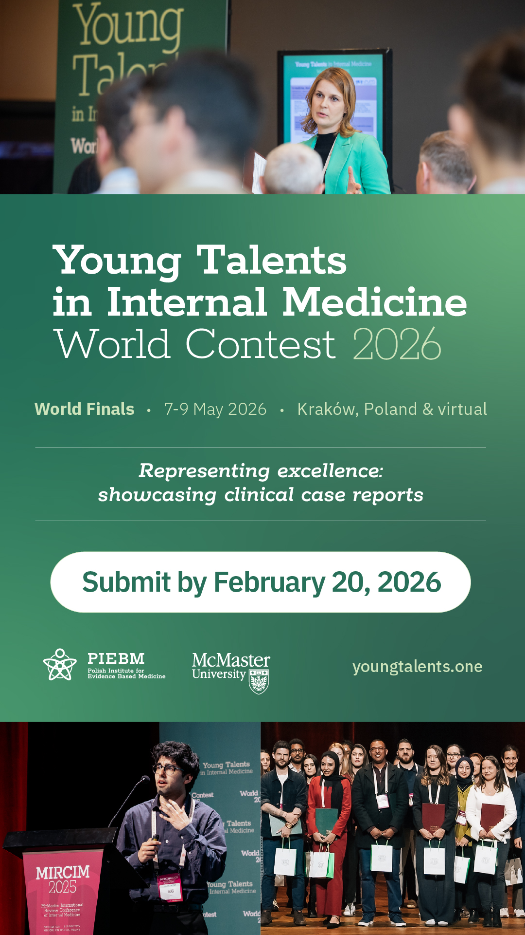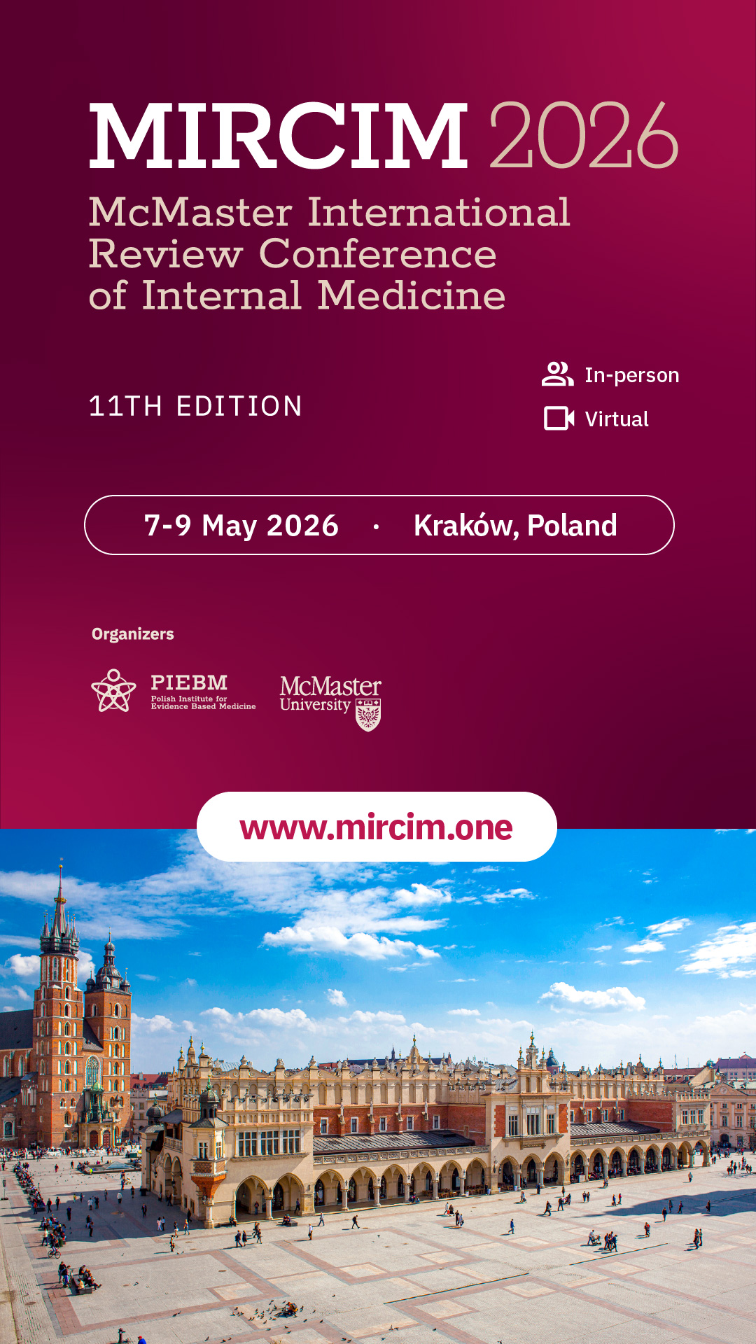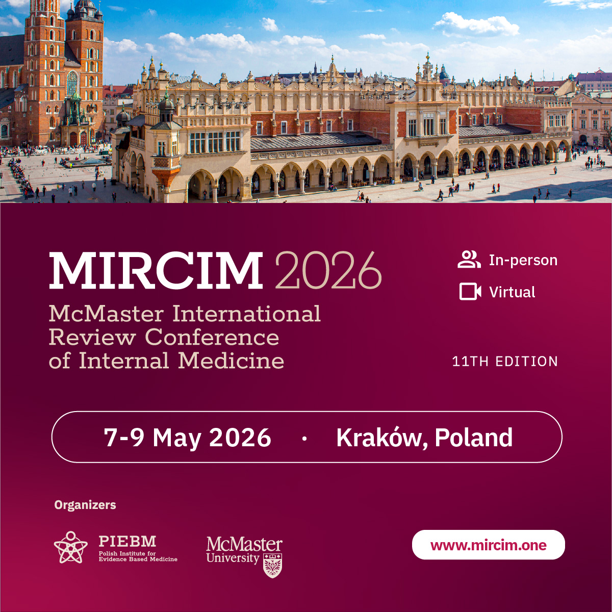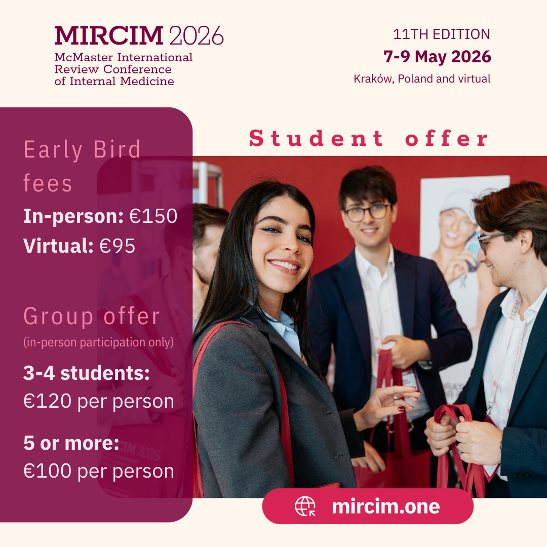 We invite you to make use of the official promotional materials prepared for our three upcoming medical events: the 11th McMaster International Review Conference of Internal Medicine (MIRCIM 2026), AIMed: Artificial Intelligence in Medicine 2026, and the Young Talents in Internal Medicine World Contest Finals 2026.