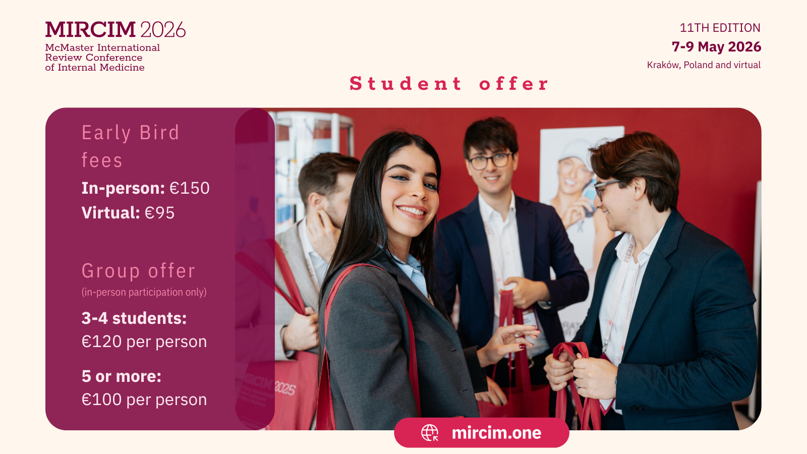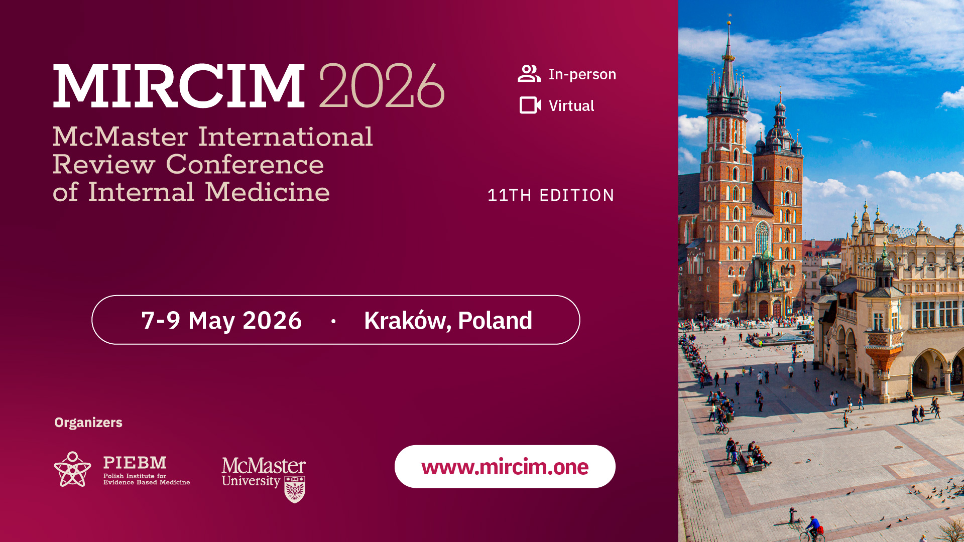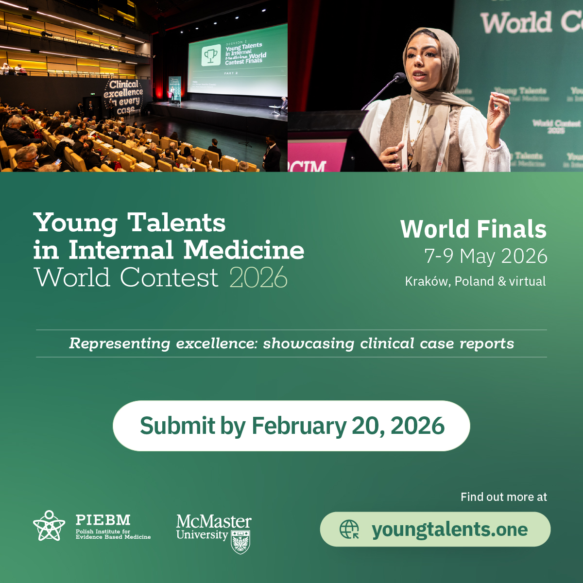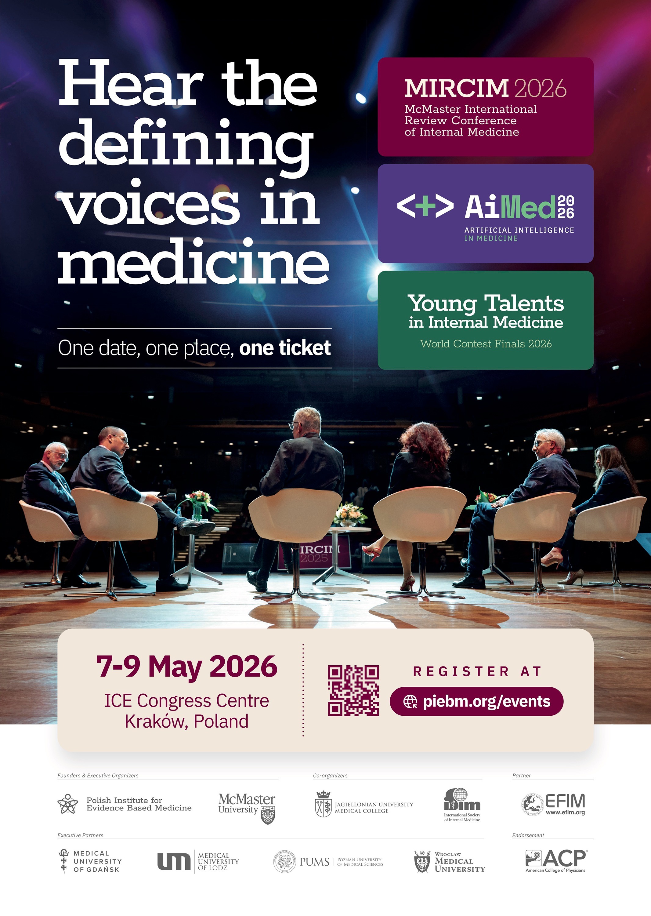 We invite you to make use of the official promotional materials prepared for our three upcoming medical events: the 11th McMaster International Review Conference of Internal Medicine (MIRCIM 2026), AIMed: Artificial Intelligence in Medicine 2026, and the Young Talents in Internal Medicine World Contest Finals 2026.